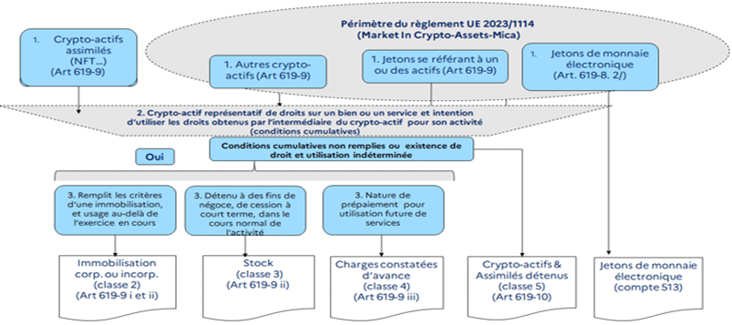 En cas de réponse positive aux deux critères, ce sont les droits attachés qu’il conviendra de comptabiliser, selon leur nature ; à défaut, une catégorie comptable spécifique est créée pour enregistrer le crypto-actif.